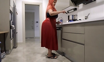 cameriera fa capo ottenere un hard-on seducendo pantaloncini corti! in cucina