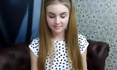 Towheaded青少年玩她的fuckbox与玻璃假阳具上的摄像头