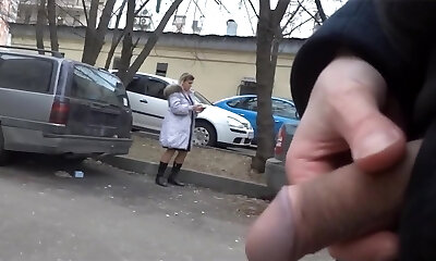 Man showcases in public and jerks off dick near unknown girl. OMG!