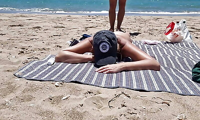 ExpressiaGirl with big udders sunbathes and walks nude on the beach