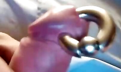 Dansing pierced jizz-shotgun with Ball stretching and rings