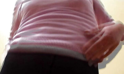 Slutwife Milky Mari showing her pink knocked up and creampied pussy through the panties and shorts!