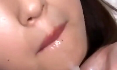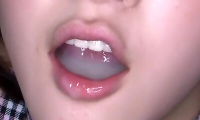 Japanese cutie swallows a huge mouthful of cum