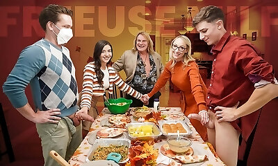 Big Tit Asian MILF Has Horny Three Way With Cute Asian