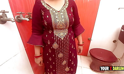 美丽的印度德西宝莱坞模型马拉女王在浴室洗澡