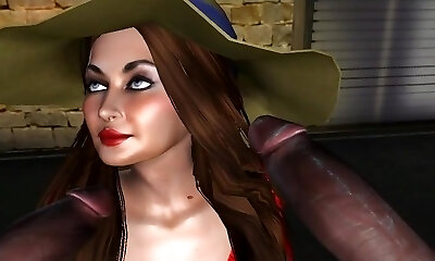 狡猾和丰满的3d动画女孩得到铅垂摇滚硬