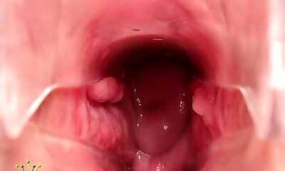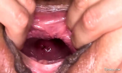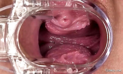 艾比张开她的阴部,这样我们就可以看到她的子宫颈了