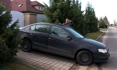 德国学生布鲁内特与刺穿乳头luvs骑自行车和轰出在新的空气!