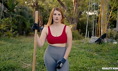 胖乎乎的红发Abigaiil莫里斯弯腰两个硬公鸡
