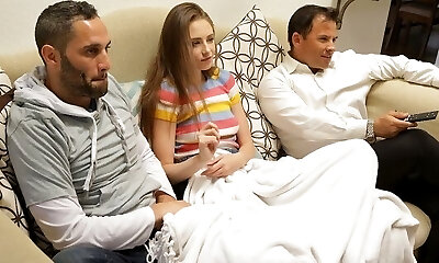 瘦小的妹妹在法律得到第一个Boink通过stepbro&rsquo的;S Jizz-shotgun